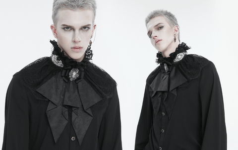 Devil Fashion Men's Gothic Stand Collar Lace Splice Necktie Black