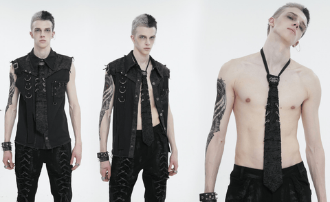 Gothic neckties are the perfect accessory to enhance your ensemble. These neckties boast an avant-garde design featuring lace patchwork, chains, eyelets, and exquisite embroidery. One of the ties is meticulously adorned with eyelets, adding a touch of rebellious charm and a hint of mystery. If you prefer a more elegant design, one with exquisite embroidery will capture your heart. Dare to stand out with these enchanting neckties and make a lasting impression wherever you go.