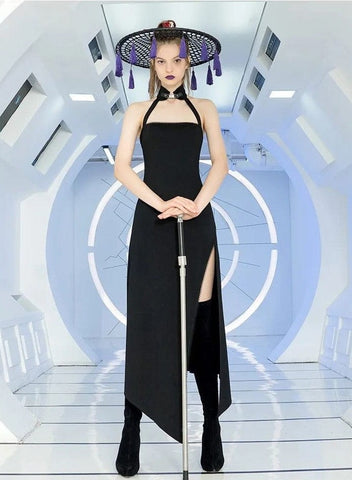 If you are looking for a more elegant and sharp look, than the fitted slit dress is something you cannot miss. Formal and more elegant occasions require wearing something more appropriate and suitable, and this dress provides just that. Playing on the side of edginess, it is a tight black garment with straight cut cleavage and high side slit. The real difference and the different that all the goth girls will love comes in the halter neck straps.