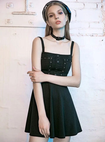 Continuing in the gothic vibe, this slip dress is cool and sexy. The tiny straps provide support while the eyelets on the front make it look totally punk.