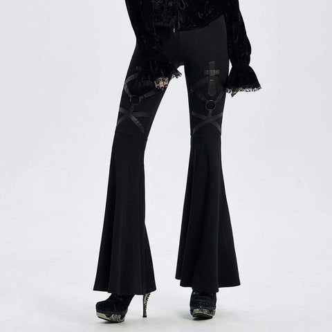 Women's Gothic Faux Leather Straps Bell-bottomed Pants
