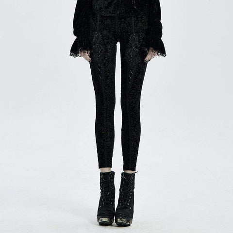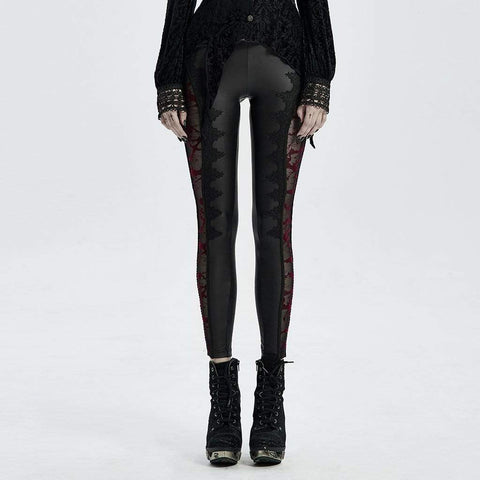 Women's Gothic Floral Sheer Faux Leather Leggings