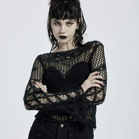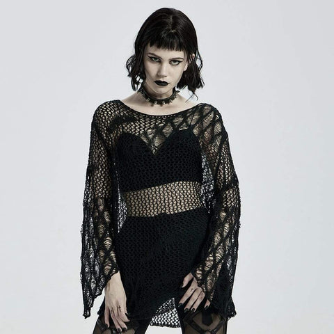 Women's Gothic Irregular Hollow Flare Sleeved Kitted Tops