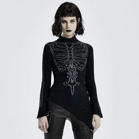 Women's Gothic Skull Black Asymmetric Sweater Halloween Costume