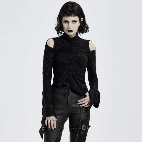 Women's Punk Cutout Shoulder Irregular Long Sleeved Shirt