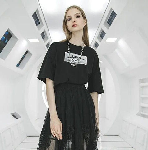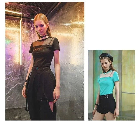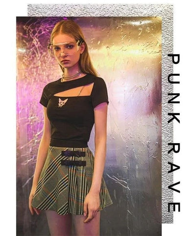 Another very cute piece from the newest arrivals collection is the gothic T-shirt. It is a casual piece, in black color that can easily be paired with any type of bottoms – jeans, shorts, skirts. Again, as the other parts of the newest arrivals, this shirt also contains the image of a cat's head. The real beauty of this shirt comes from the cutout cleavage. It is made diagonally, starting from one side to the other.