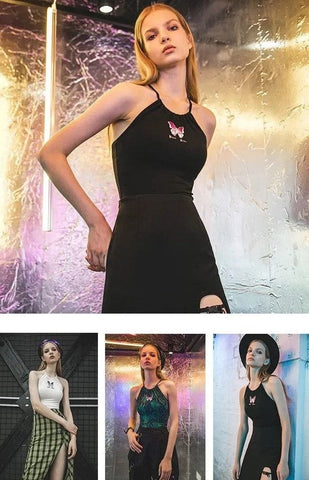 Tank tops are cute and practical part of different outfits. Light and easy to style, the tank top can find its use in many casual outfits. For the Goth girls, the Butterfly tank top is a nice mixture of the old and the new. The top resembles a halter neck, leaving the shoulders bare and naked. It is tight and follows the line of the body and comes in a few different colors. On the front, there is a print of a butterfly.