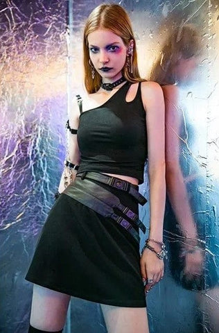 Fitting dresses are very trendy and fashionable pieces that women and girls love to wear. For the springtime, light fabrics like cotton provide a nice feel on the skin. For the Goth girls, this fitted dress has everything that is needed for flaunting this style. The top resembles the look of a tight shirt, with short sleeves and a round opening. The front has a print of a cat’s skull head. As the dress continues to the skirt, there is one interesting opening, just right on the belly, that shows some skin. The belt accents the waist. The skirt is short and tight.