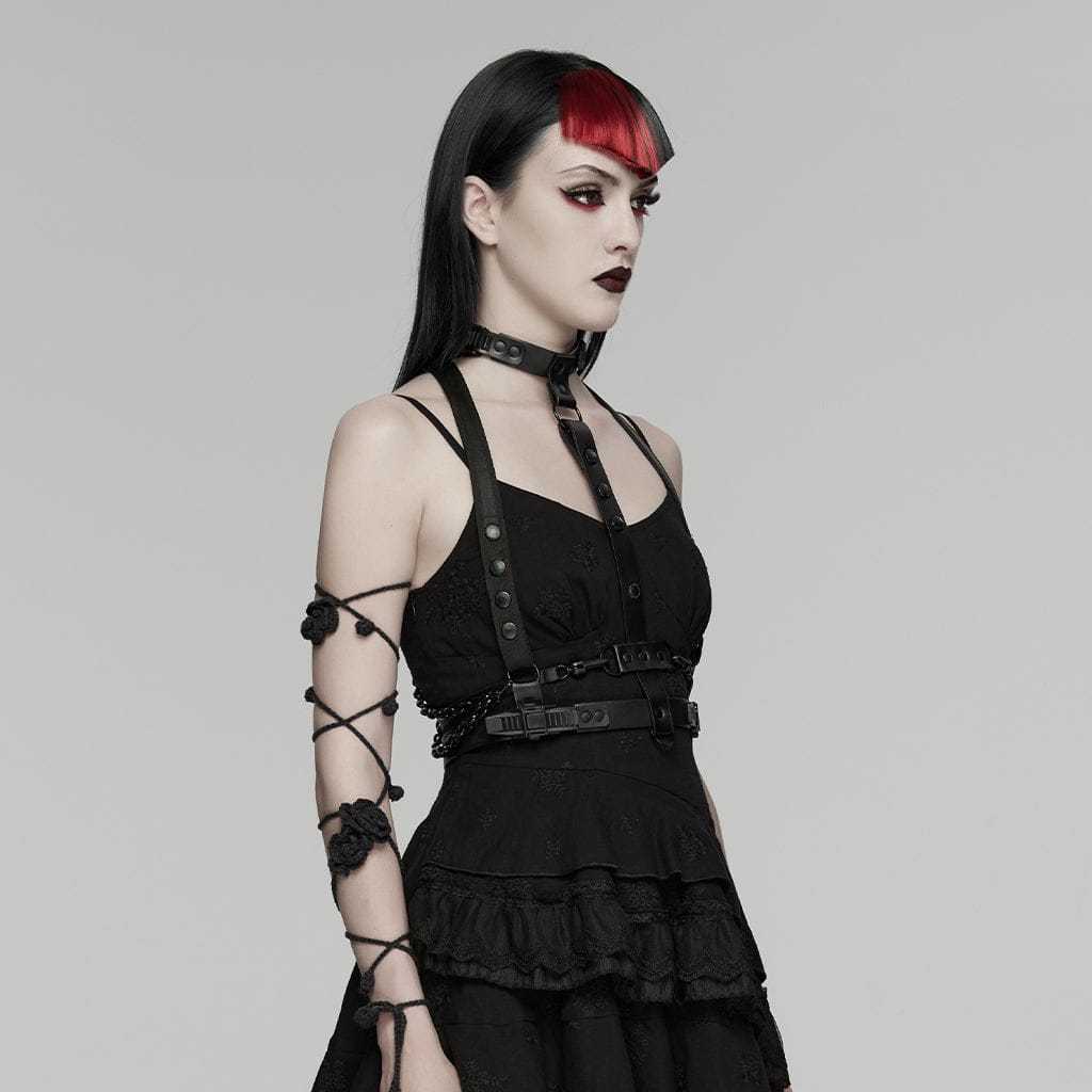 Women's Punk Skeleton Chained Harness Black