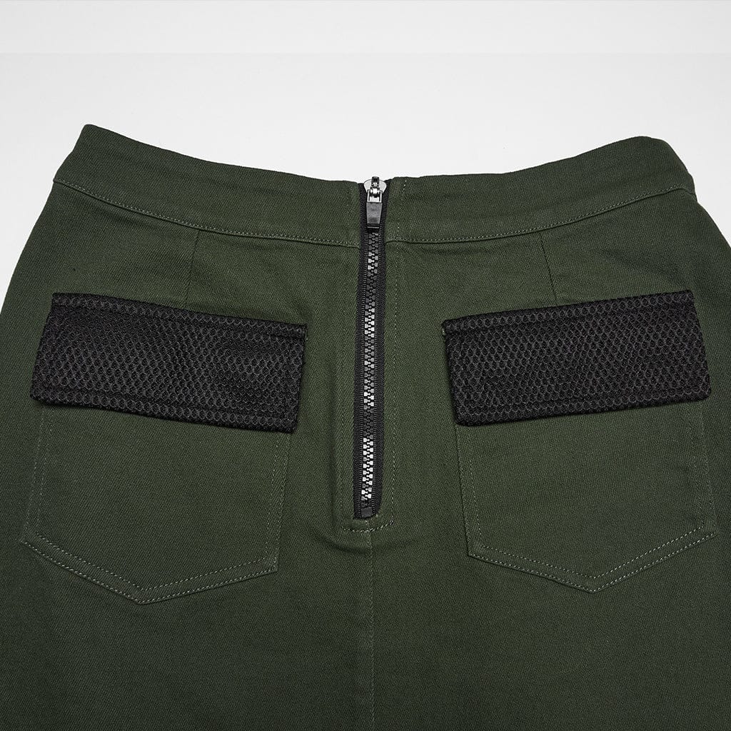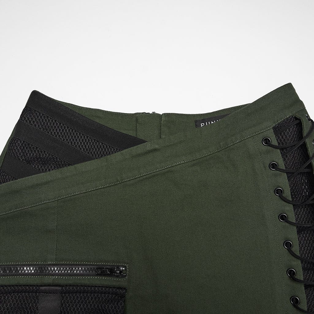 Women's Cyberpunk Asymmetrical Mesh Splice Bodycon Skirt Black-Green