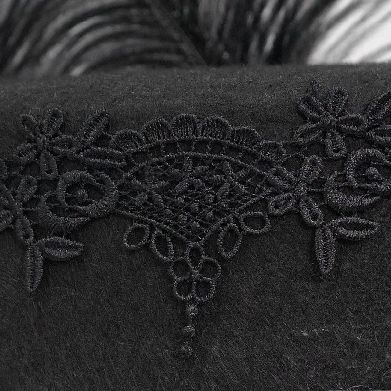 Unisex Gothic Noir Floral Feather Top Hat with Net Veil