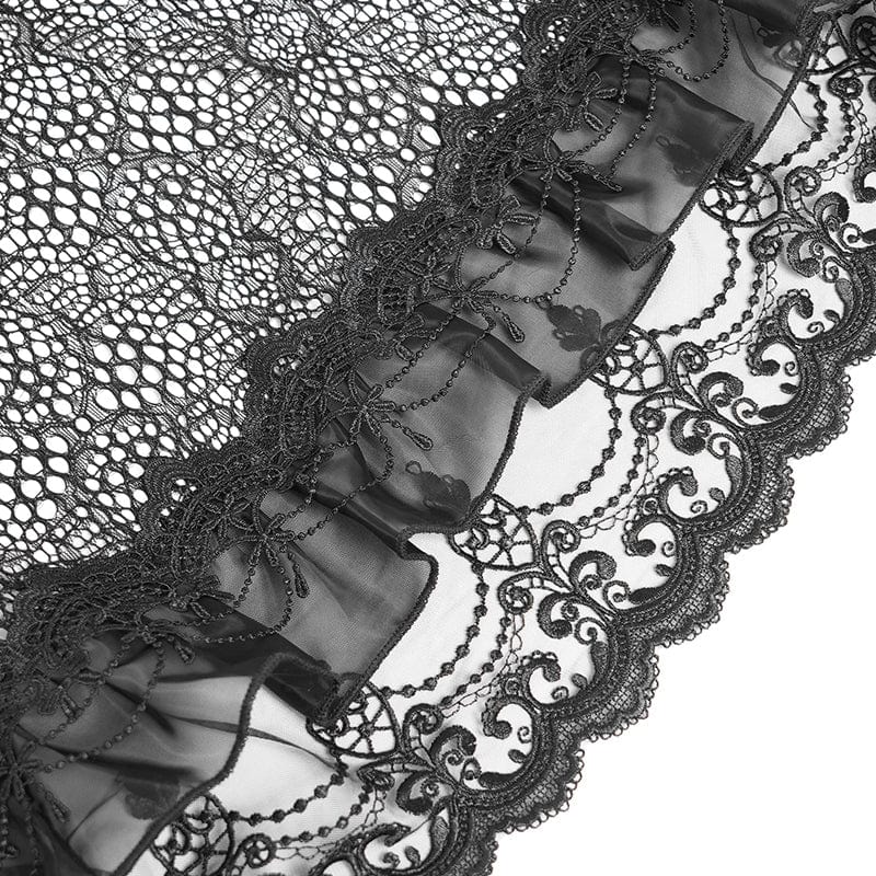 Lace - cut hem and sheer mesh craft ambiguous tension between concealment and exposure, echoing the “half - veiled” aesthetic in gothic literature. The subtle skin peek amplifies mysterious allure, aligning with gothic contradictory sensuality.