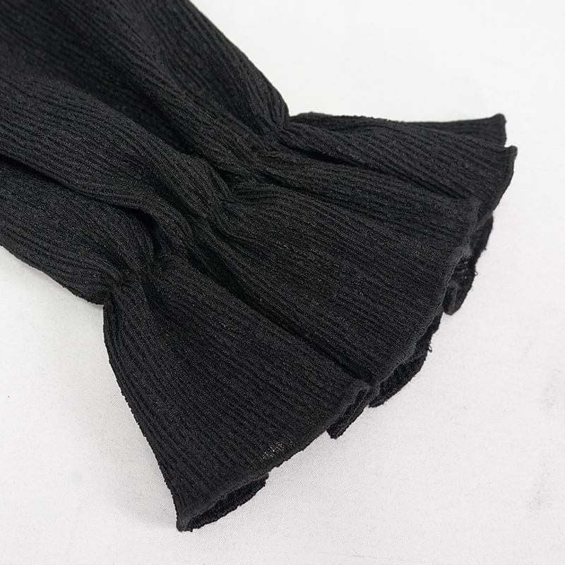 Women's Gothic Strappy Puff Sleeved Ruched Black Shirt
