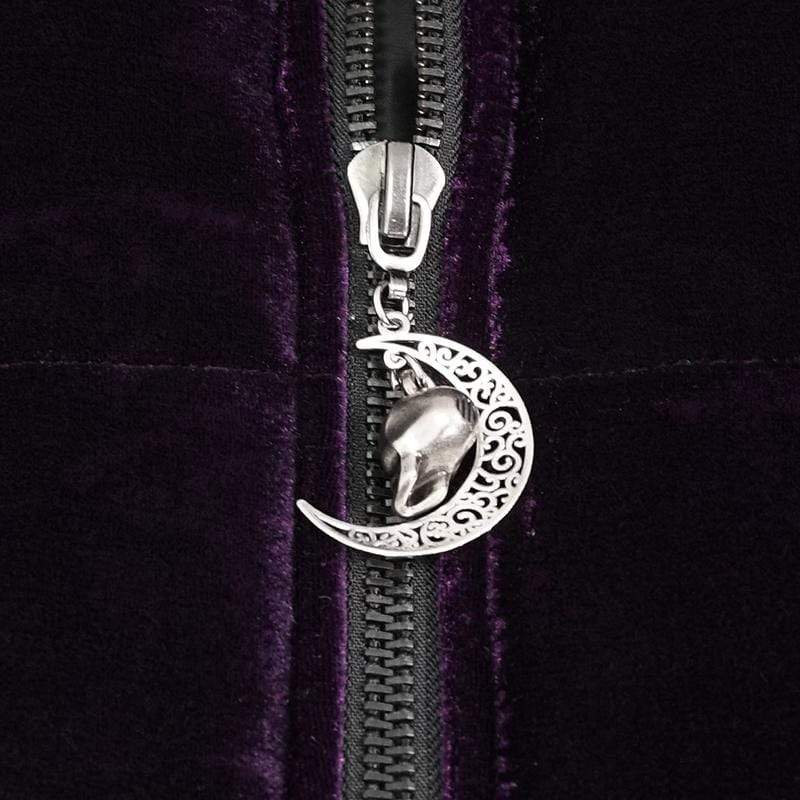 Women's Gothic Zipper Velvet Cloak with Witch Hood