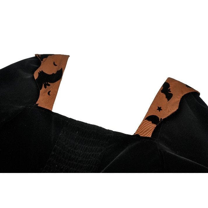 Women's Gothic Bat Printed Lace-up Pumpkin Halloween Dress