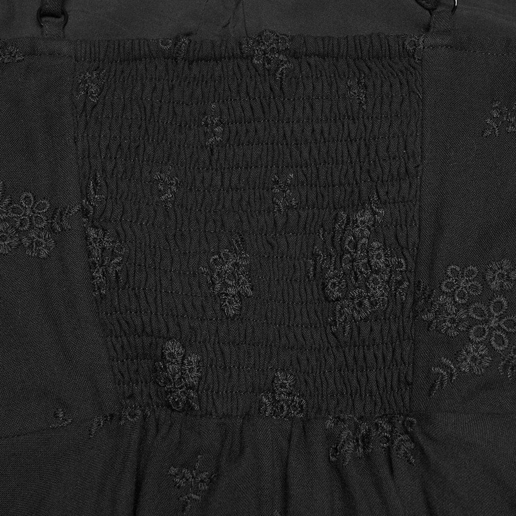 Meet our Women's Gothic Floral Embroidered Asymmetric Slip Dress—a standout piece for alt fashion lovers, blending gothic charm with delicate details. Crafted from soft cotton, durable polyester, and stretchy elastane, it offers both comfort and a slim fitted silhouette. The black fabric is adorned with subtle floral embroidery, while the ruffled hem and asymmetric front design amplify its gothic grunge edge.