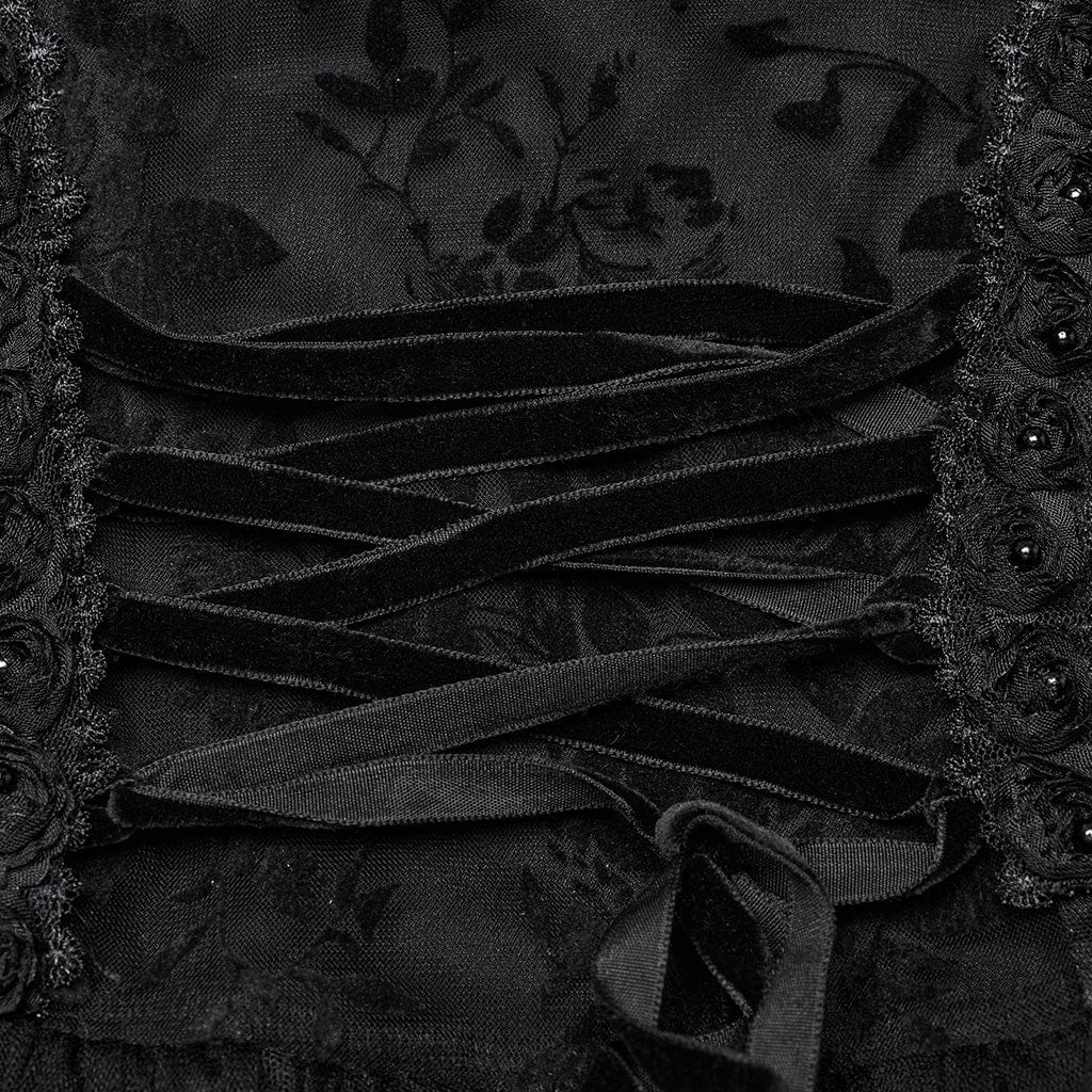 Women's Gothic Stand Collar Flocking Mesh Formal Dress