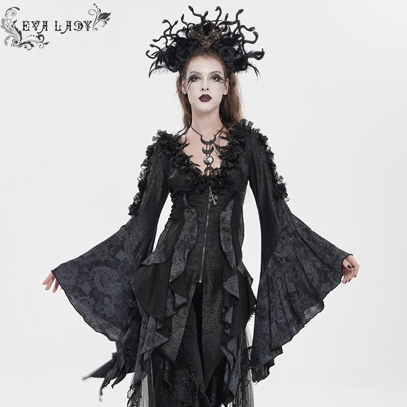 Women's Gothic Rose Feather Printed Long Sleeve Shirt