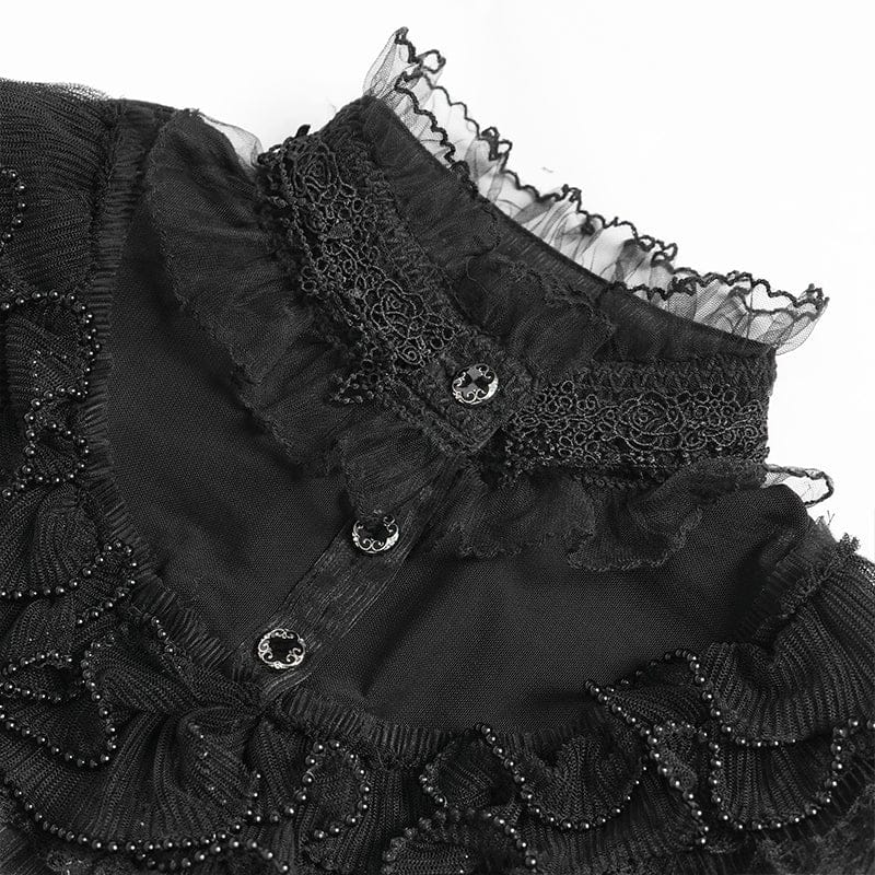 Women's Gothic Ruffled Stand Collar Puff Short Sleeved Shirt Black