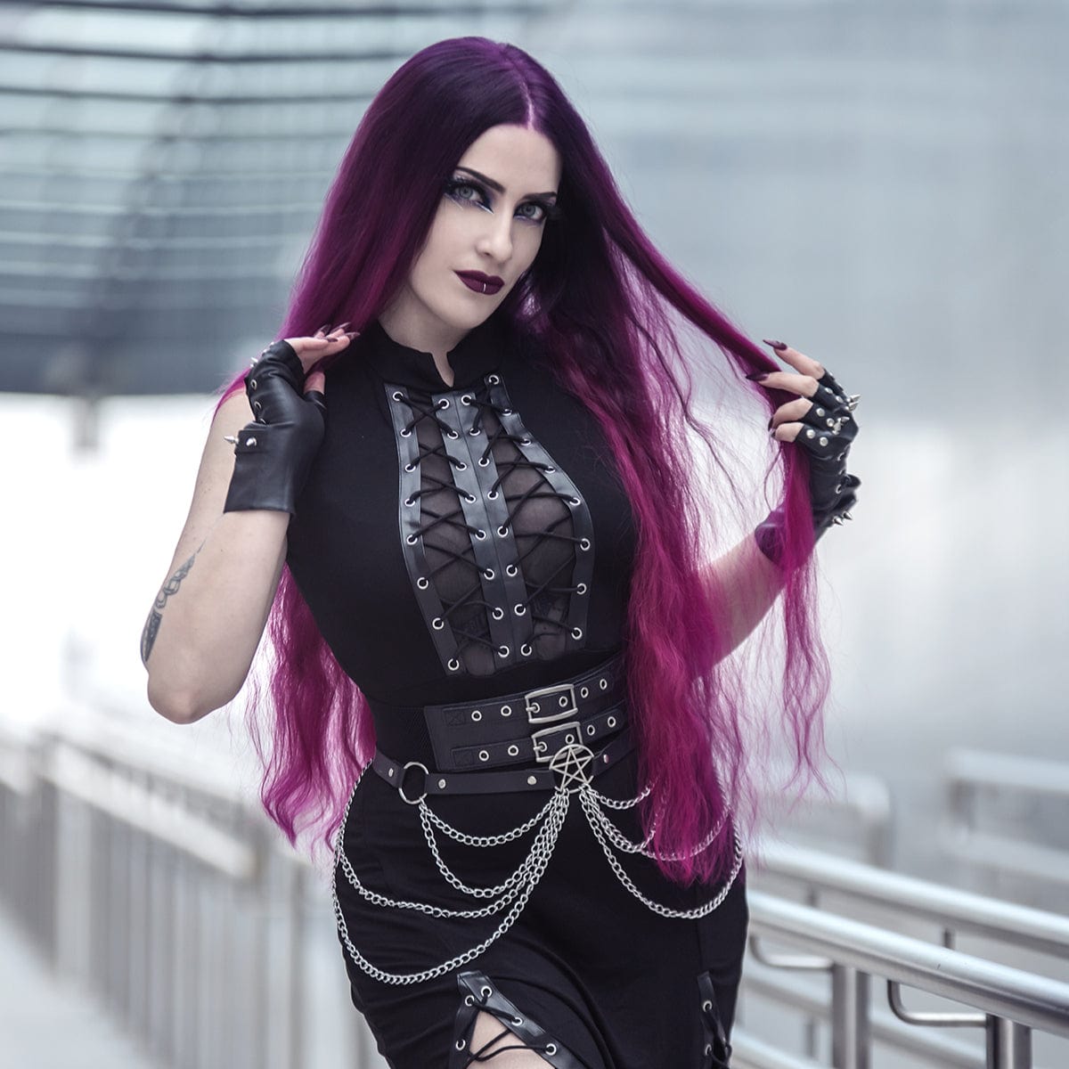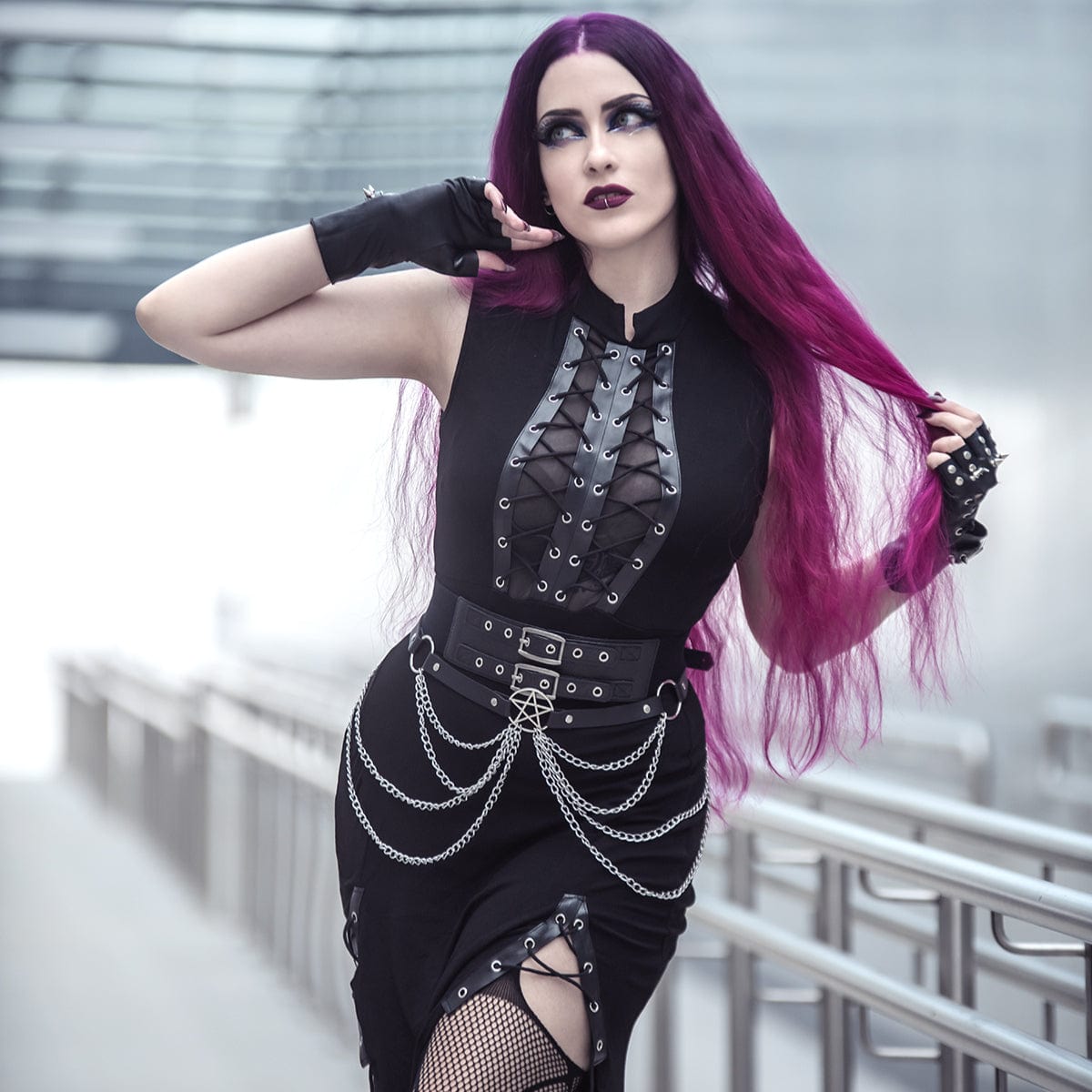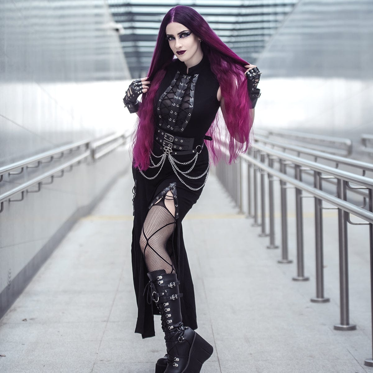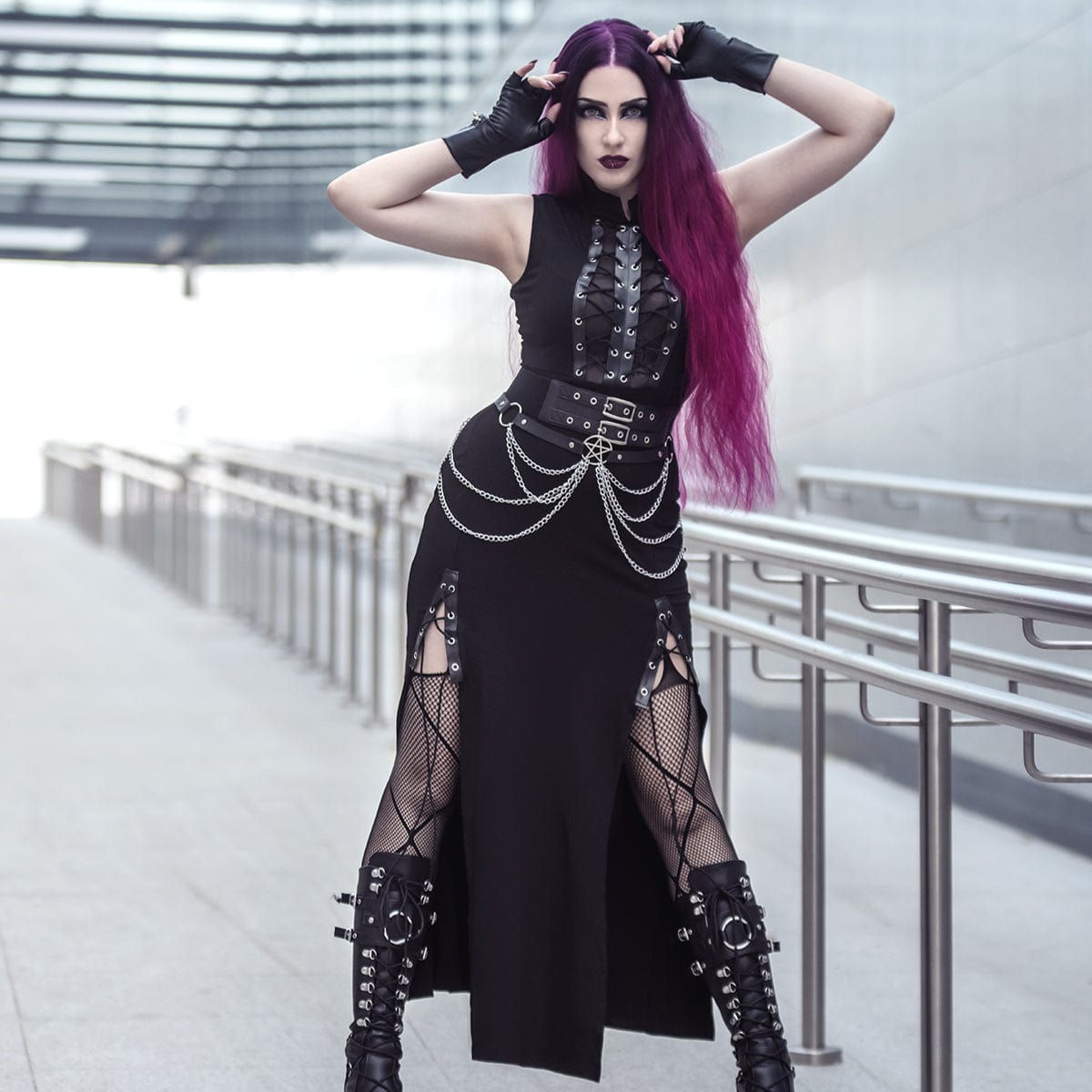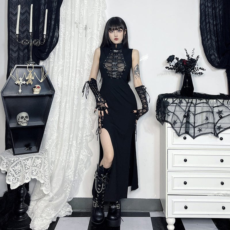 Women's Gothic Cut-out Side Slit Mesh Maxi Dress