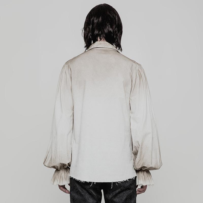 Punk Rave Men's Steampunk Ruched Lace-up Drawstring Long-Sleeve Shirt Y873