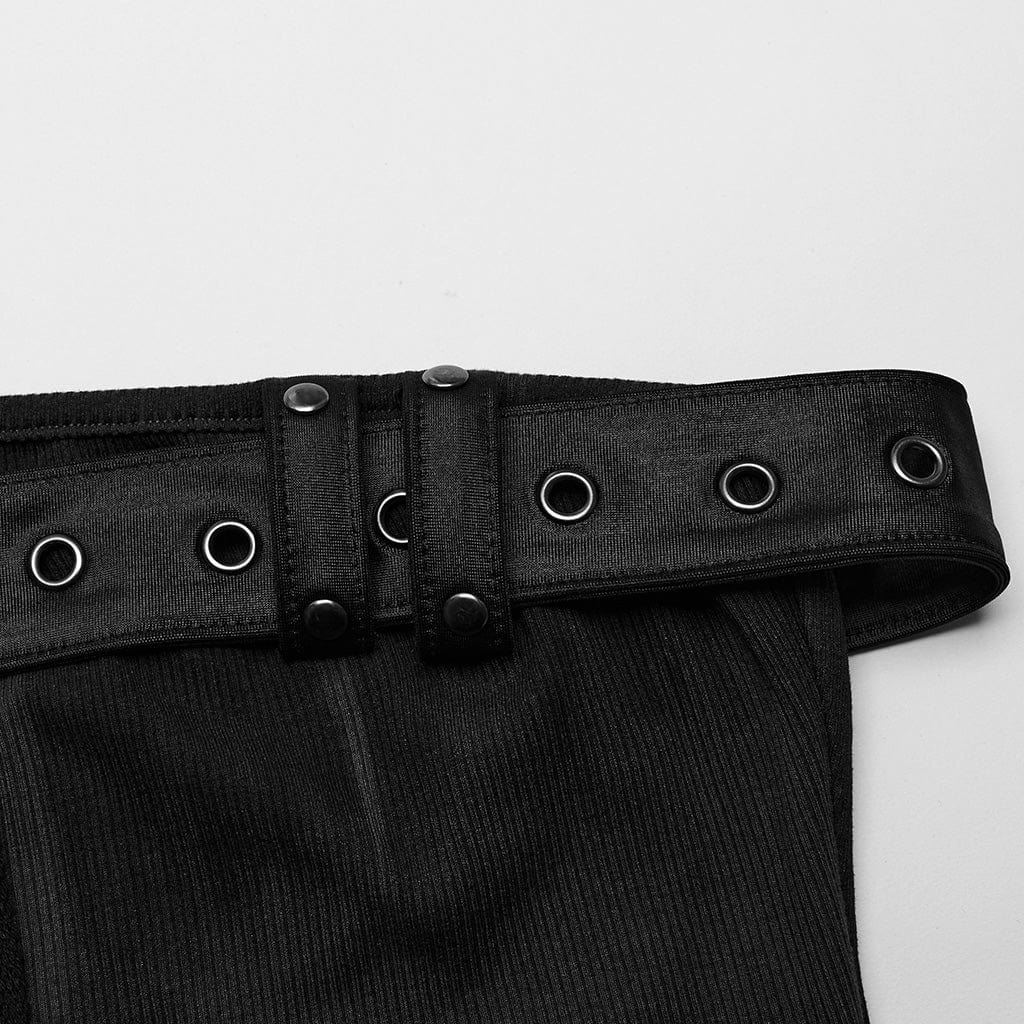 Women's Punk Buckle Lace-Up Eyelet Off Shoulder Dress Black