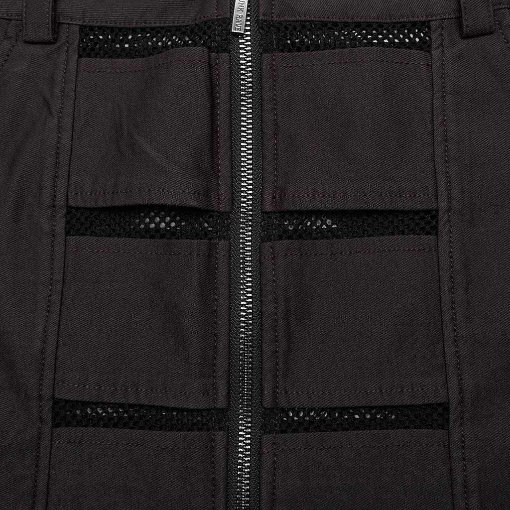 Women's Punk Mesh Splice Zipper Skirt Coffee