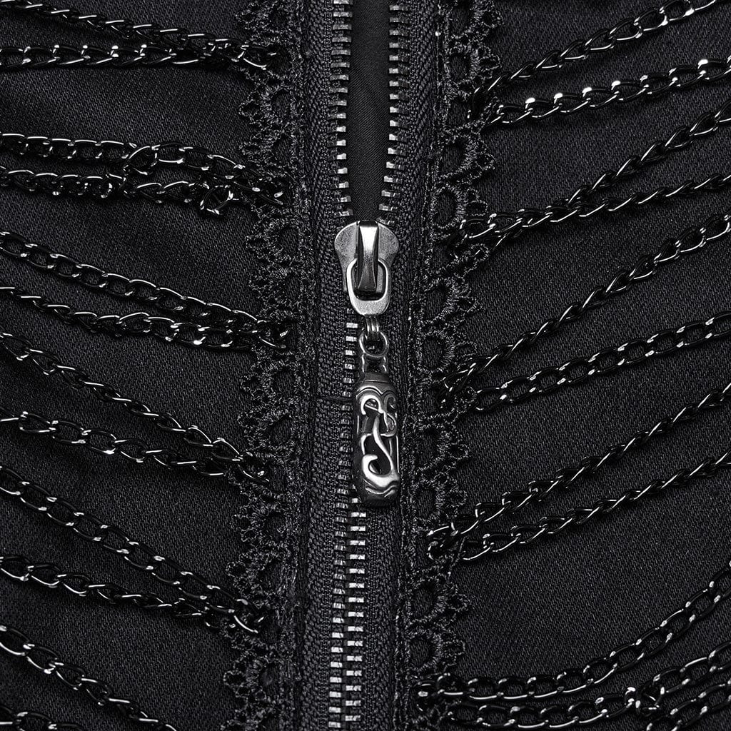 Women's Punk Stand Collar Chain Pin Coat