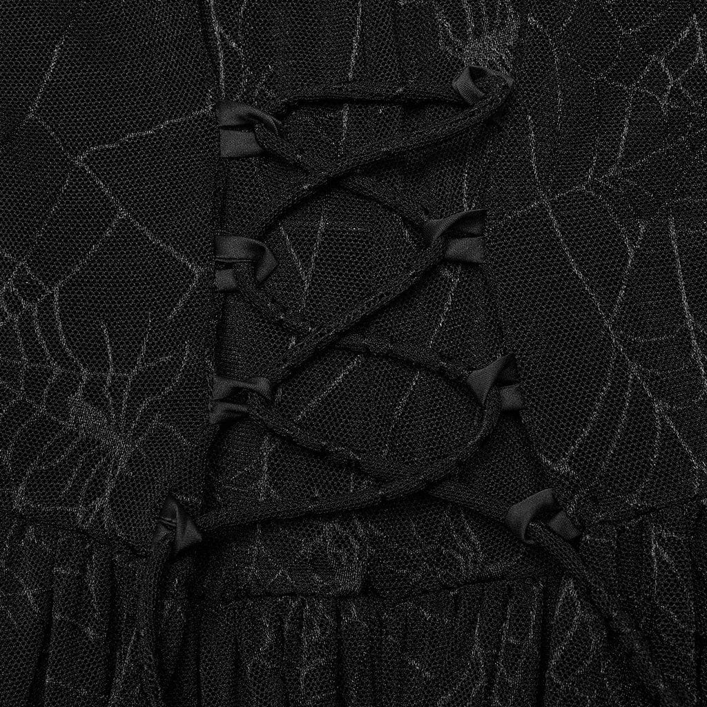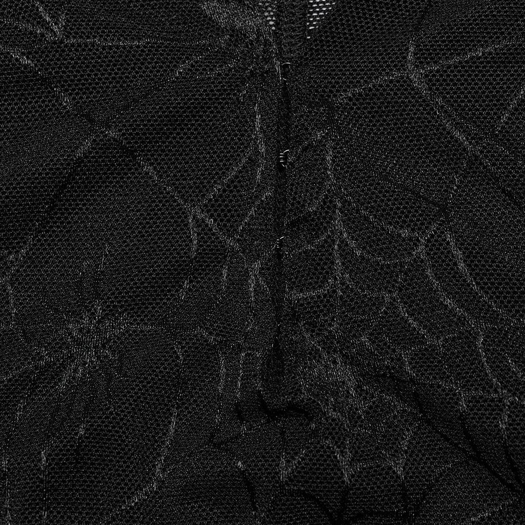 The fabric is a luxurious blend of elastic glossy spider web and mesh, offering a seductive sheen and a hint of mystery. As you slip into this dress, you'll be enveloped in its smooth embrace, feeling both comfortable and empowered.