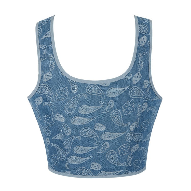 Women's Grunge Lace-up Floral Overbust Corsets Blue