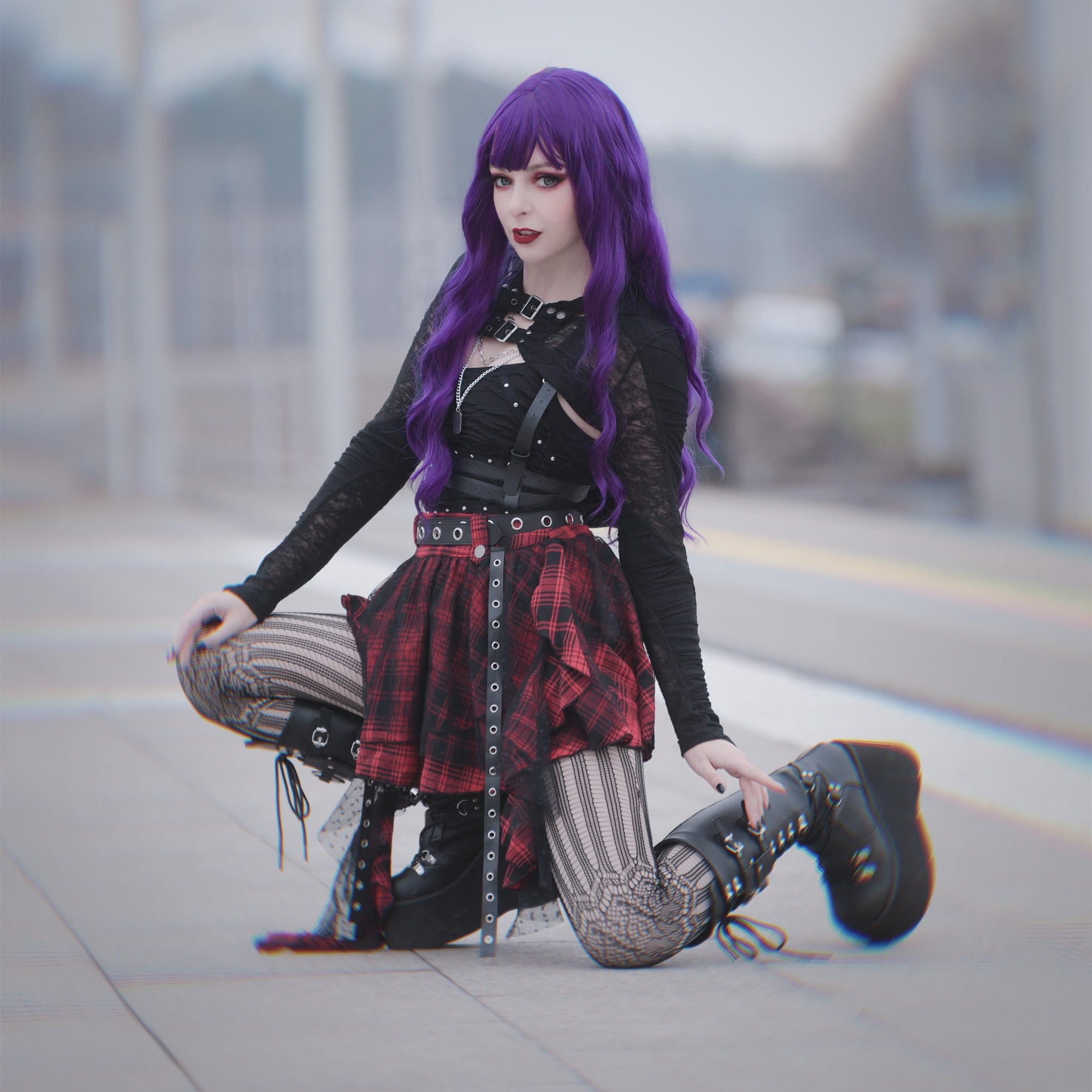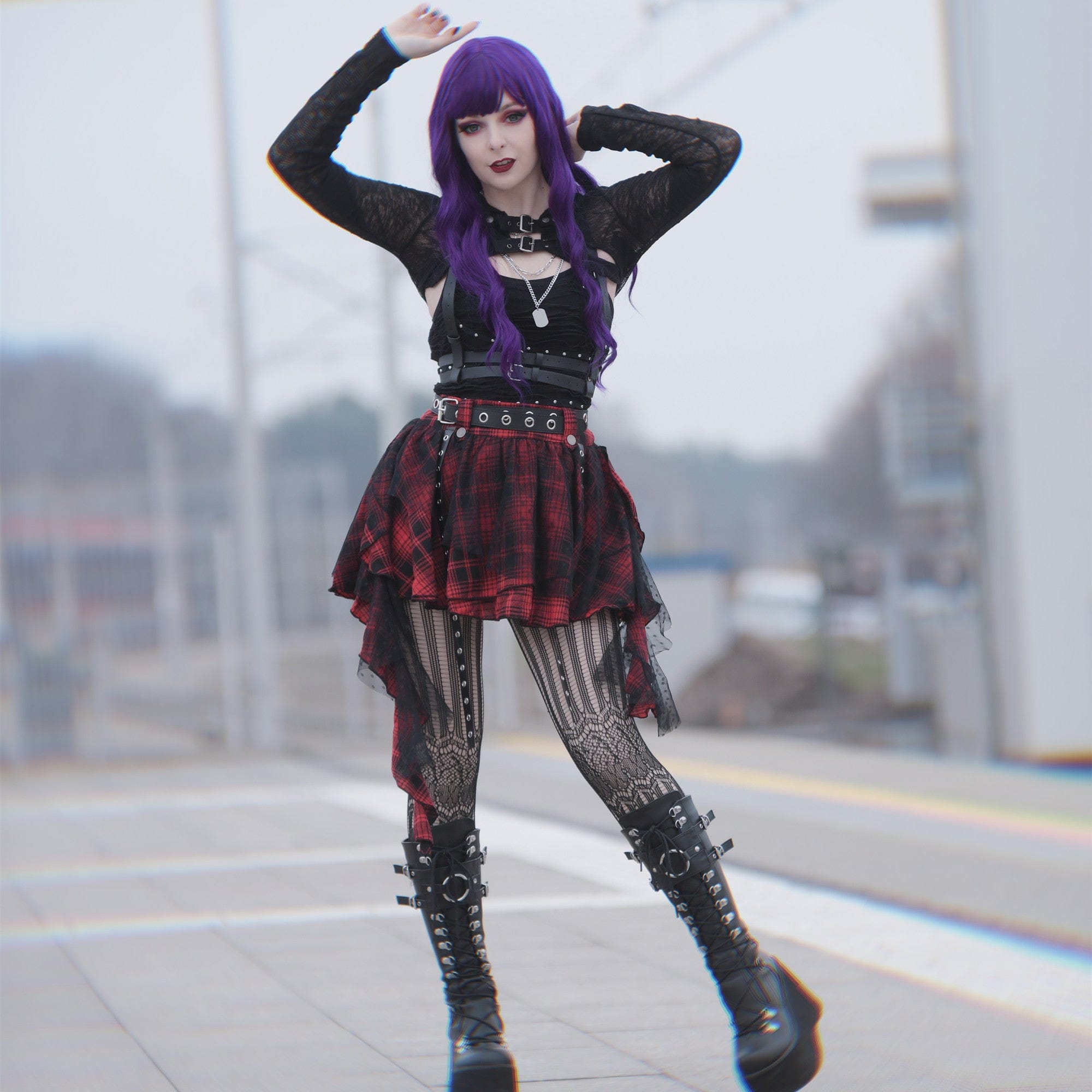 Women's Grunge Mesh Grid Bubble Short Skirt Red