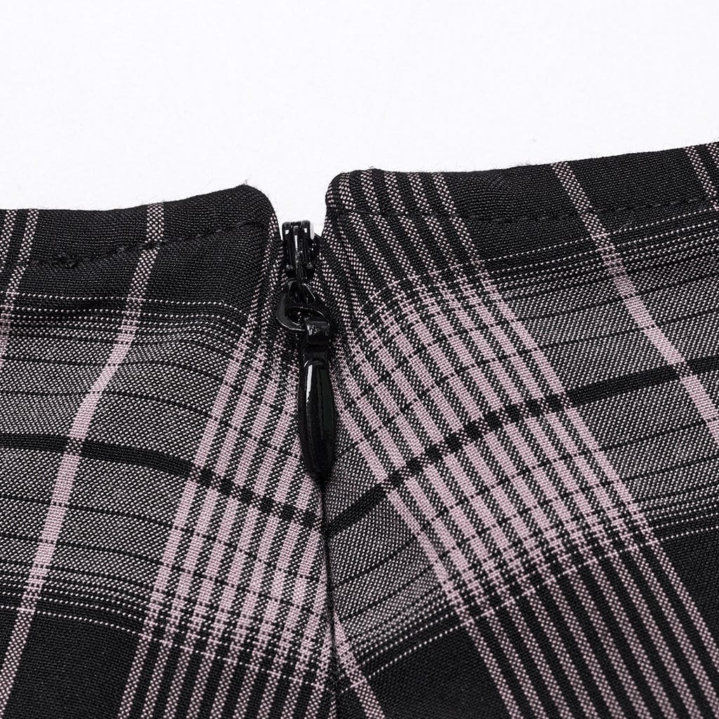 Women's Grunge Plaid Eyelet Mesh Ring Pleated Skirt Pink