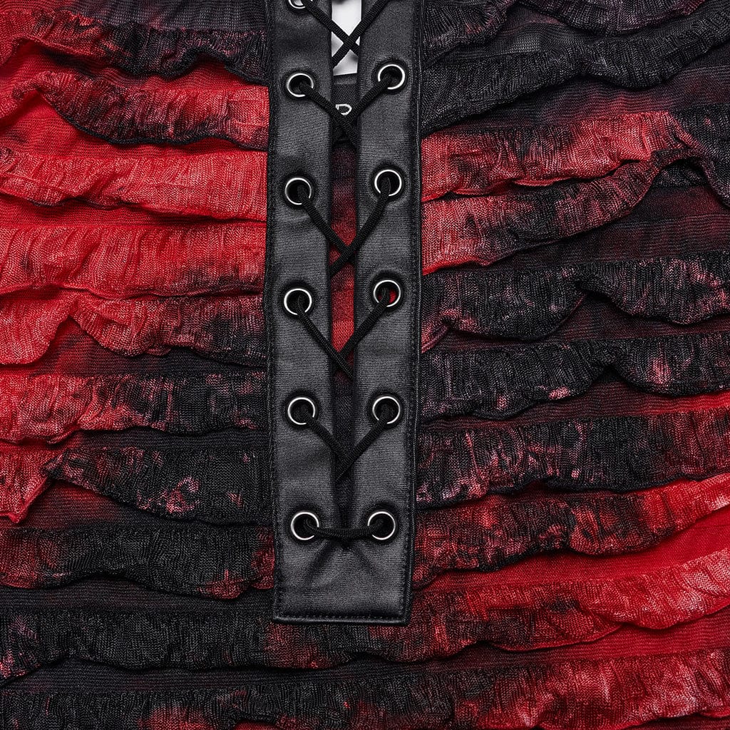 Women's Grunge Ruffled Tie-dyed Slip Dress Red