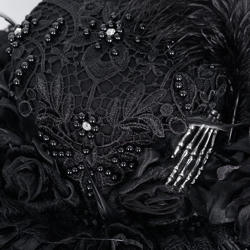 Women's Gothic Tassels Feather Lace Hat