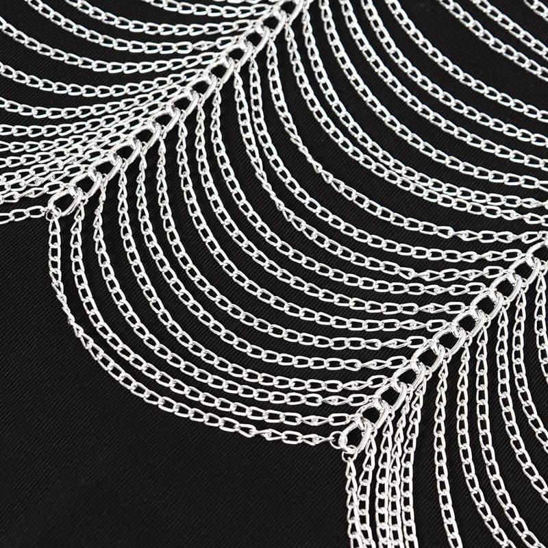 Daring, dramatic, and dripping in rebellious elegance, this Women's Punk Studded Chained Headwear is the ultimate statement accessory for those who embrace alternative fashion with a gothic and cyberpunk twist. Designed to exude dark royalty, this unique piece features delicate cascading silver chains that drape effortlessly over the head and shoulders, creating a mesmerizing web-like effect that embodies both strength and sophistication.