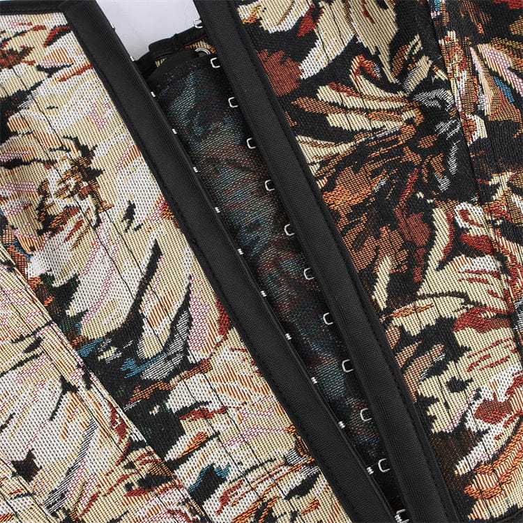 Women's Gothic Lace-up Floral Jacquard Overbust Corset