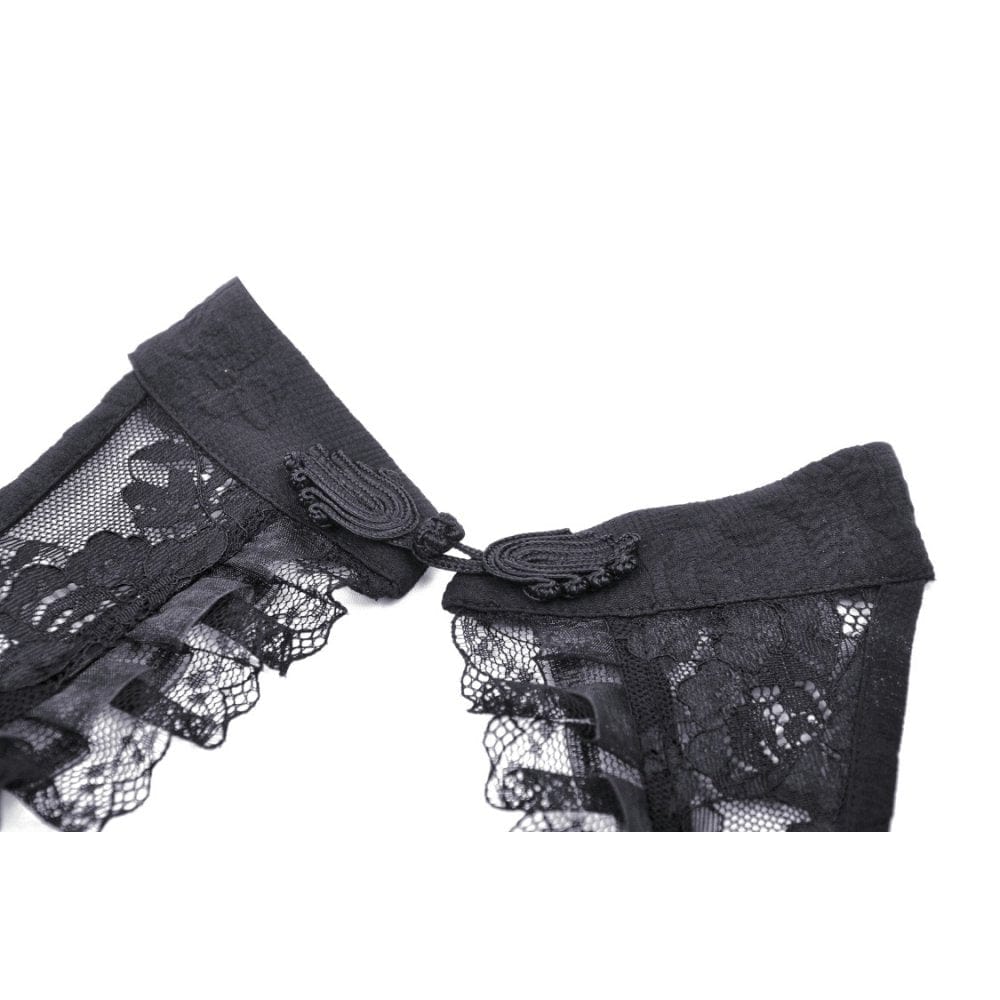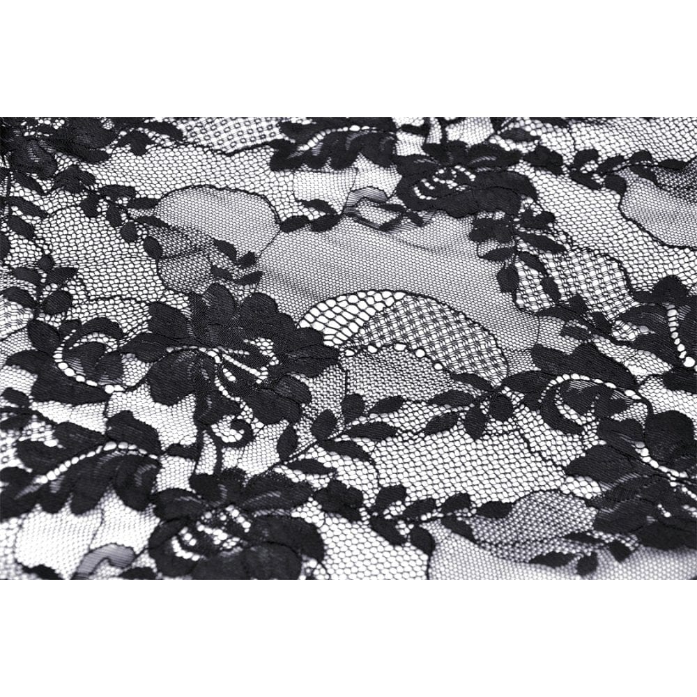 This gothic dress is a cheongsam collar and cutout on the backside. High-low lace hem with ruffled, lace patchwork on the neckline, and floral embossing on the fabric. Zipper for put on and off. Slim fitted silhouette and no elastic fabric.