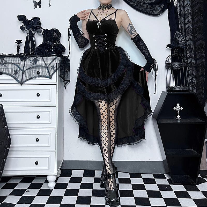 Women's Gothic Lace Splice High/low Layered Slip Dress