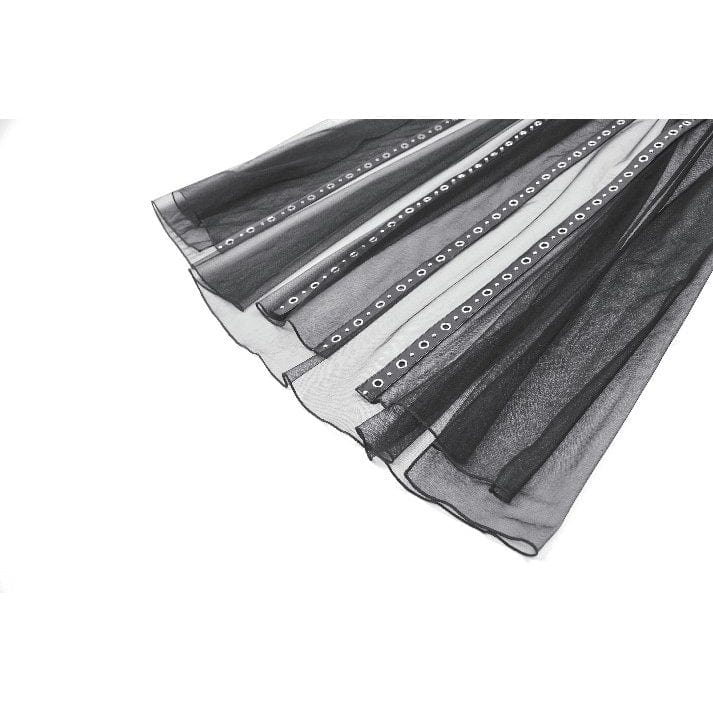 Women's Punk High-waisted Faux Leather Straps Sheer Mesh Maxi Skirt