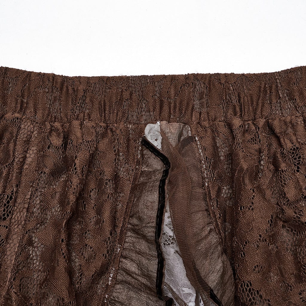 Women's Steampunk Lace Hem Drawstring Skirt Coffee