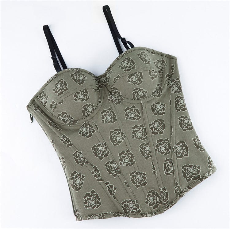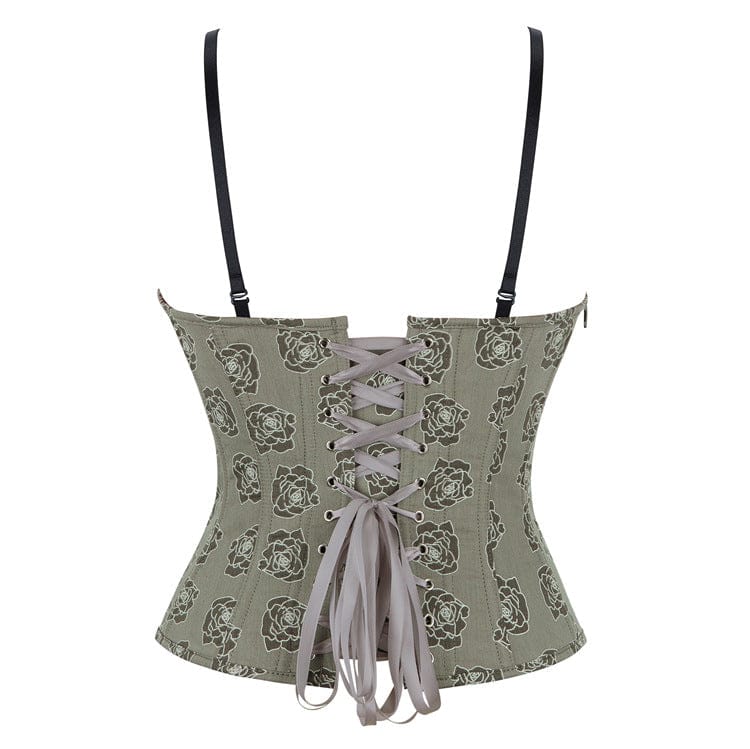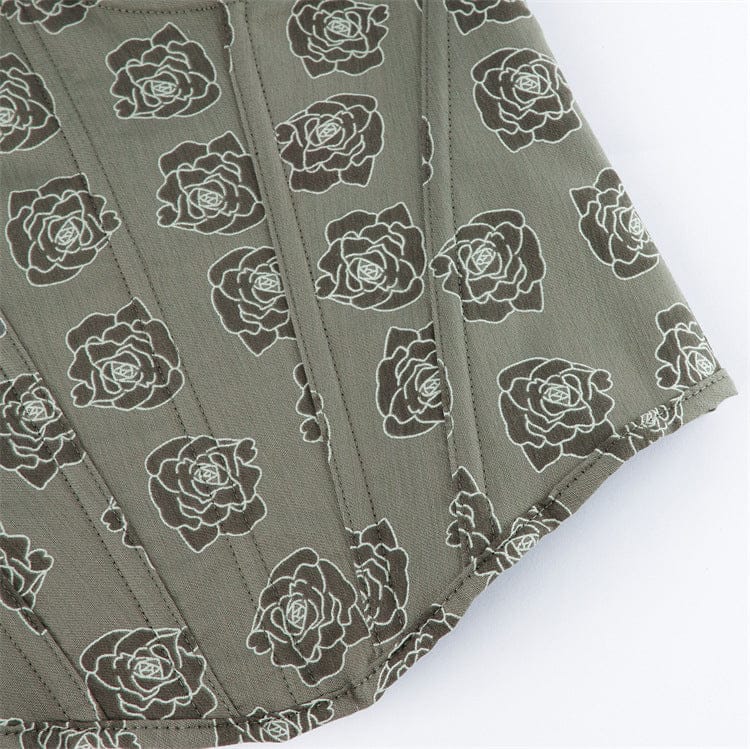 Women's Gothic Rose Printed Side Zipper Lace-up Overbust Corset