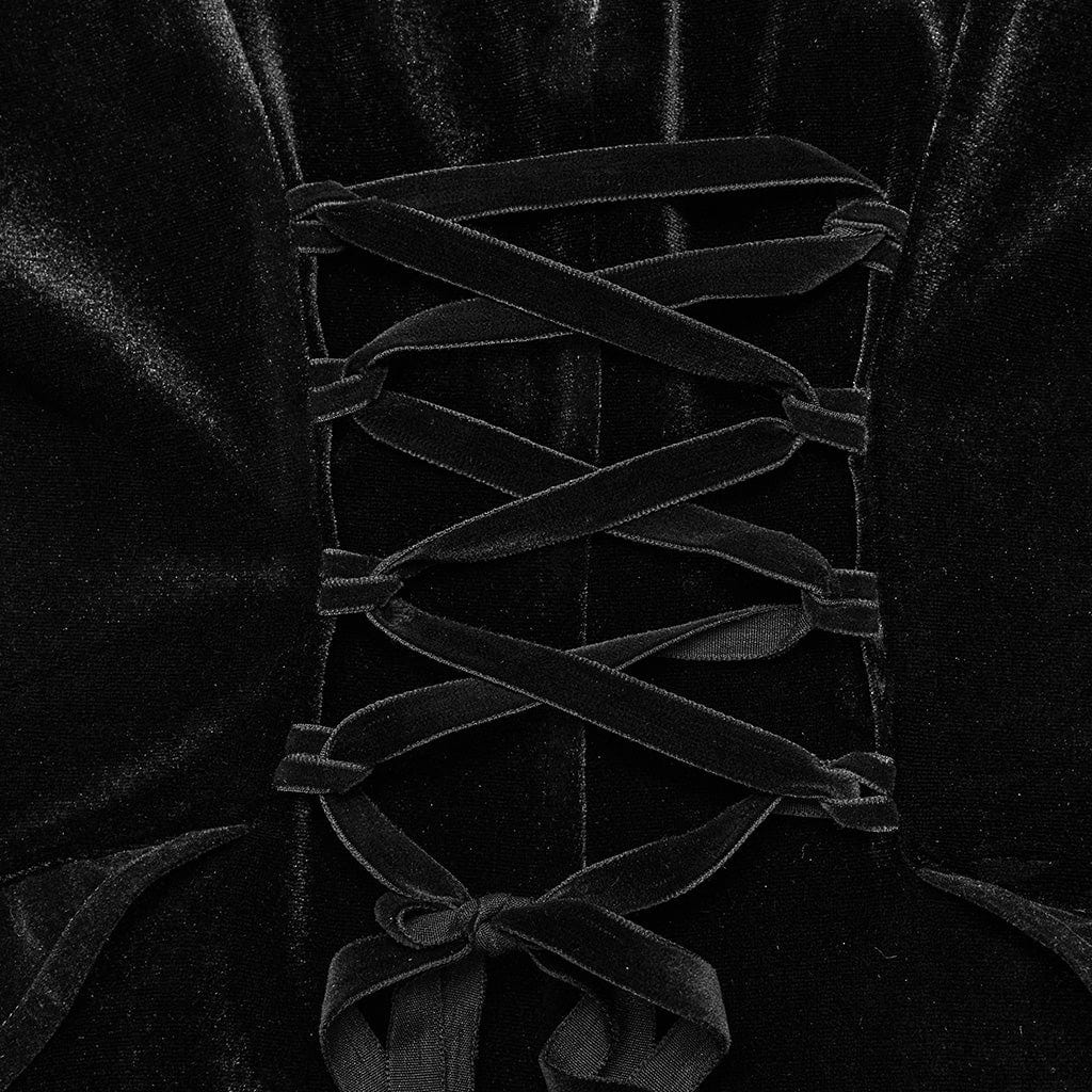 Women's Gothic Lace Ruffled Lace-Up Maxi Dress
