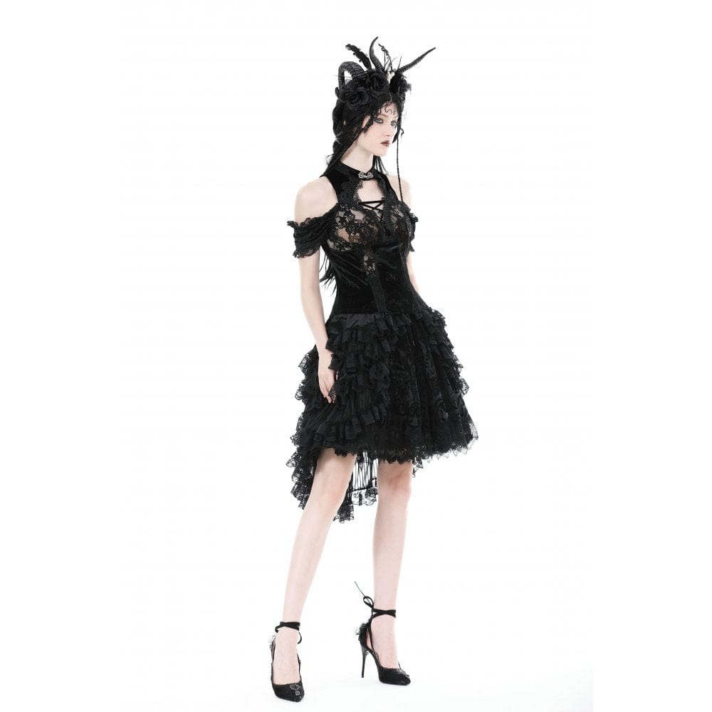 Women's Gothic Off Shoulder Lace Splice Velvet Top