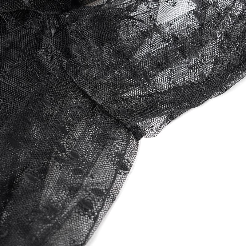 With its heart-shaped detailing and corset-inspired lace-up back, this piece enhances the silhouette while ensuring a comfortable fit. The asymmetrical mesh overlay cascades down the sides, creating a flowing, layered effect reminiscent of gothic fairy tale fashion. The detachable choker necklace with pendant details further elevates the outfit, making it a perfect choice for gothic events, cosplay, or elegant evening wear.