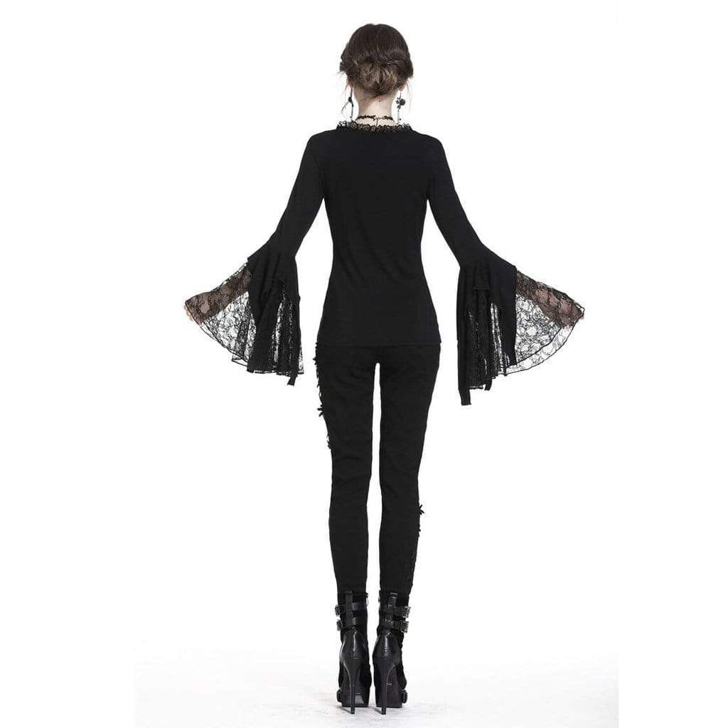The princess cut of this short top ensures a wonderful fit around the body. Little ruched details on the bust and tiny frill on the seam lines define the style of this top. Lace insets and flounce on the wrist add the necessary feminine touch to this Goth garment.