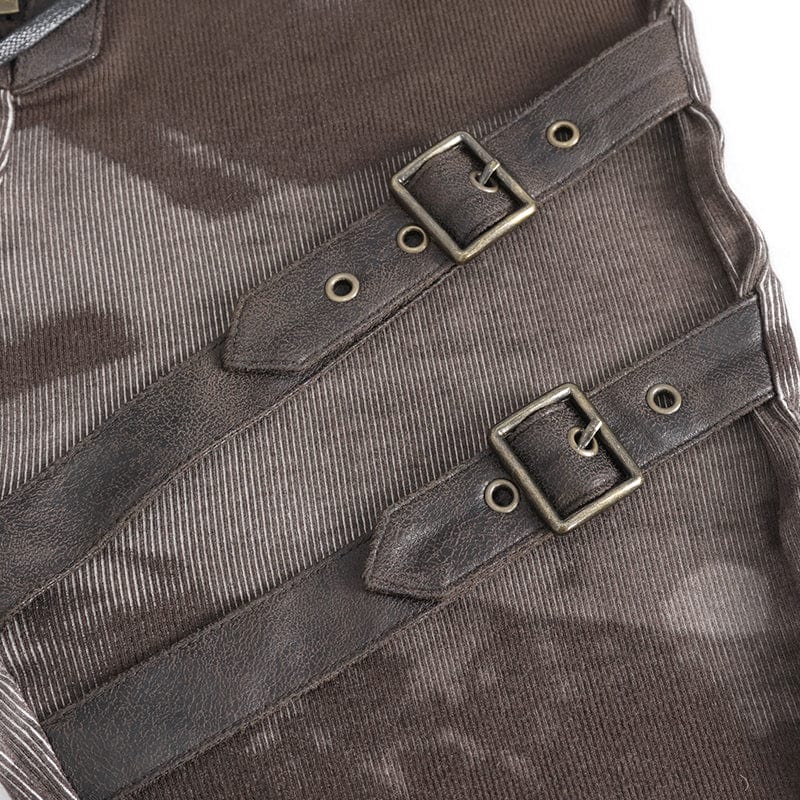 Women's Punk Tie-dyed Buckle Lace-Up Leggings Coffee