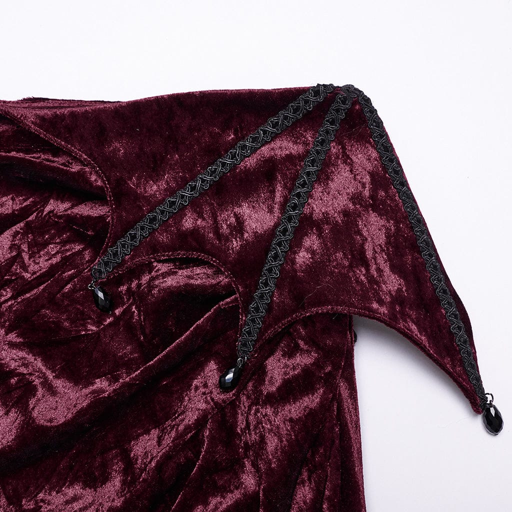 Women's Gothic Batwing Lace Splice Velvet Fishtailed Skirt Red