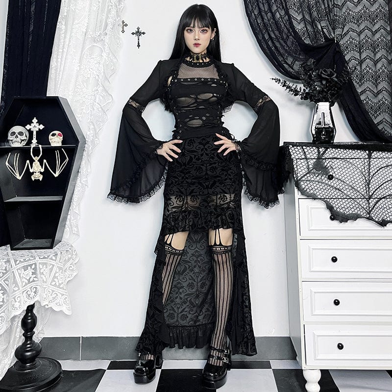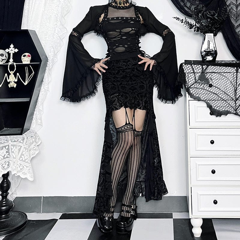 Women's Gothic Ruffled High/Low Mesh Skirt