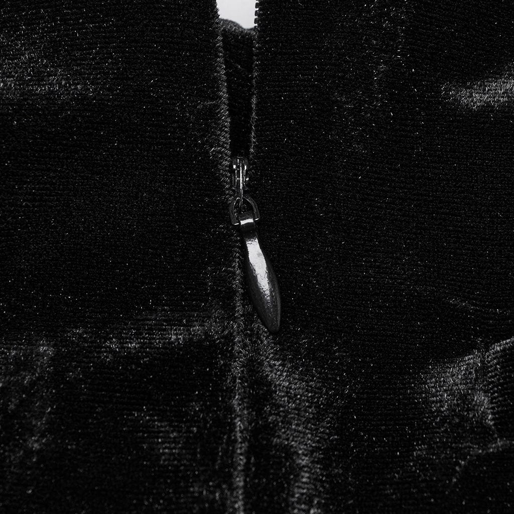 The ruffled lace splicing at the waist and hemline adds a dramatic touch, while the fishtail design at the back creates a graceful, flowing effect that is perfect for a gothic evening or formal event. The luxurious velvet texture enhances the overall gothic appeal, making it ideal for those who love to incorporate gothic Victorian elements into their wardrobe. Zipper on the back for put on and off.