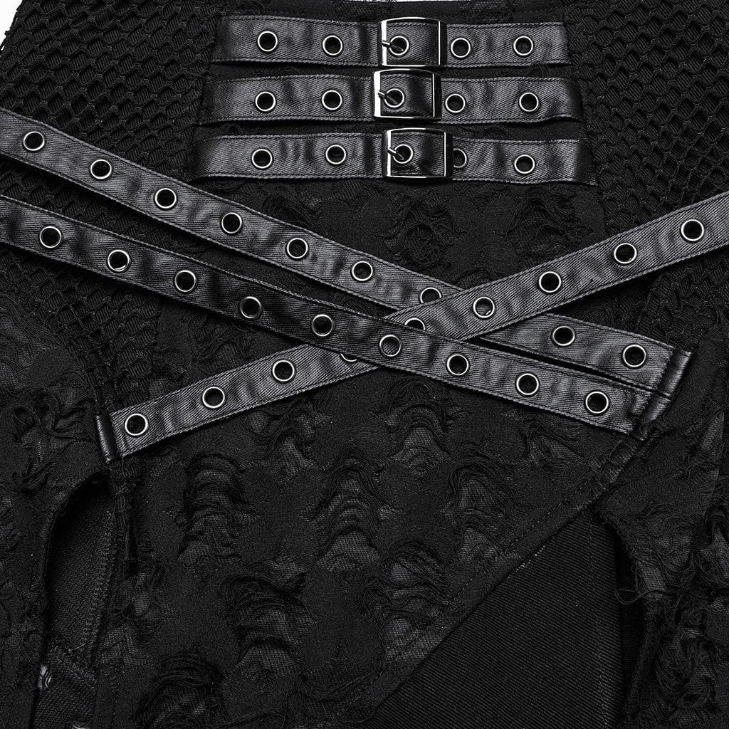 Women's Punk Ripped Side Slit Detachable Skirt